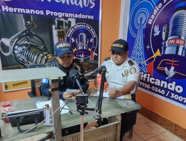 En la radio Alianza 103.7 FM en Santa María Nebaj, Quiché, policías de la Subdirección General de Prevención del Delito llevaron a cabo el programa “En Sintonía con la PNC”, donde trataron los temas “Cómo Prevenir las Extorsiones y Cómo Prevenir el Delito de Usura”.