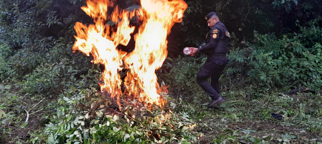 En un área aledaña al caserío Sabanetas Tanjoc, Poptún, Petén, policías de la Subdirección General de Análisis de Información Antinarcótica #SGAIA, localizaron 8,250 arbustos de coca que fueron erradicados e incinerados, teniendo un avaluó de Q.82,500.