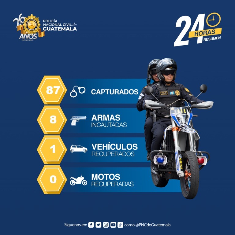 De las 87 personas capturadas ayer 31 de diciembre, 29 fueron en la capital y 58 en los departamentos; 10 fueron detenidas por órdenes de jueces.